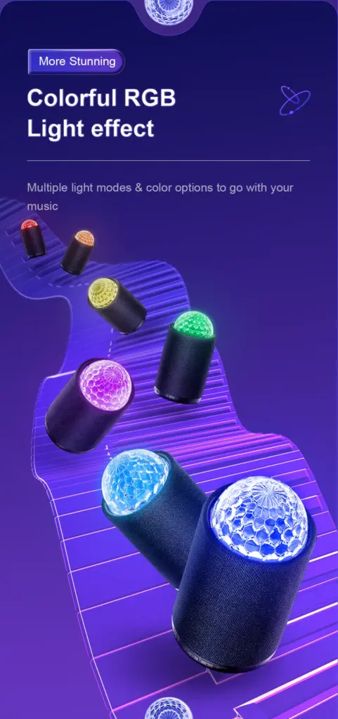 ▶ Freely switch between multiple RGB light modes with optional colors to go with your music
