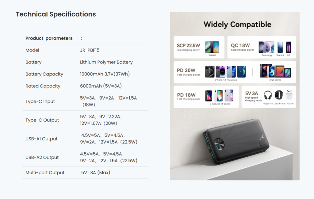 2. Type-C port supports two-way fast charging