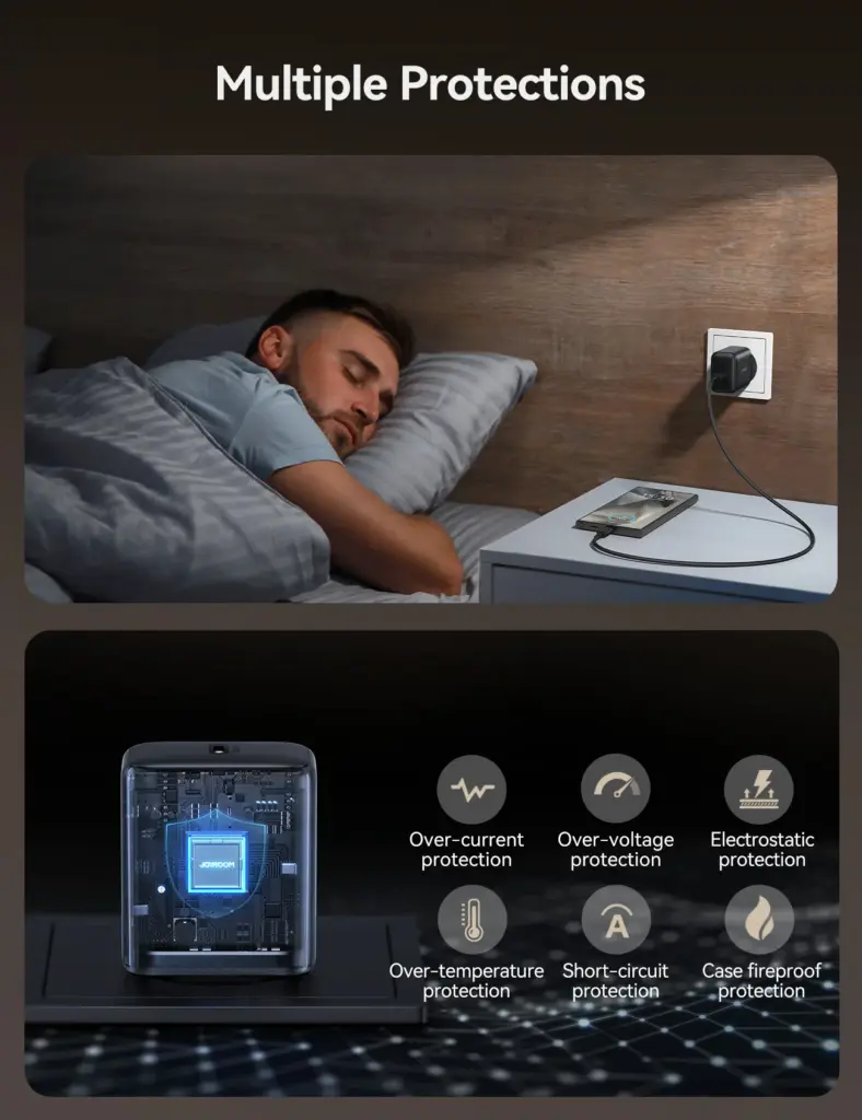 5. 6-point safety protection including over-current protection, over-voltage protection, etc.