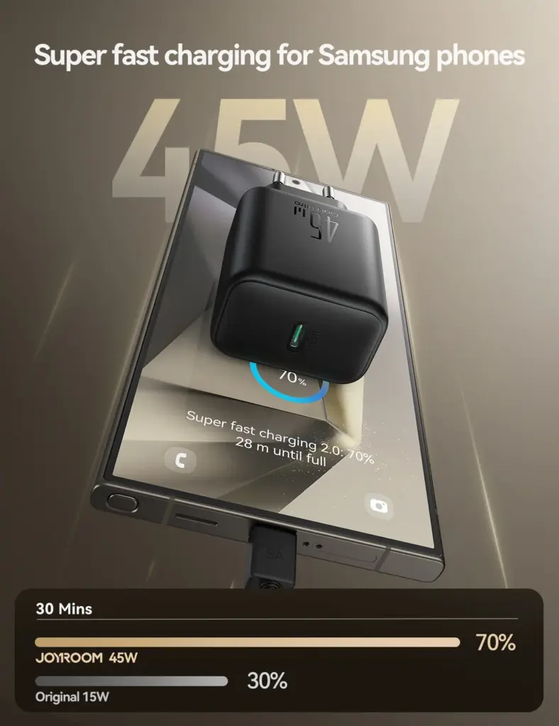 1. Supports 45W super fast charging 2.0 for Samsung Ultra series